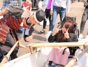 車椅子の方がトイレに行くときや移動する時など数名の付き添いが必要になりますが、そういったサポートも楽しんで行っている様子がとてもいい感じでした。